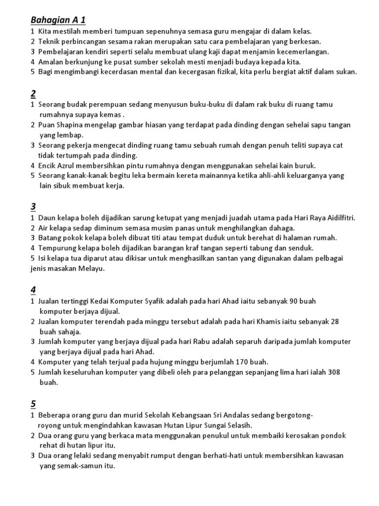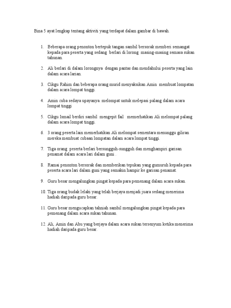 Bina 5 Ayat Lengkap Tentang Aktiviti Yang Terdapat Dalam Gambar Di Bawah Pdf